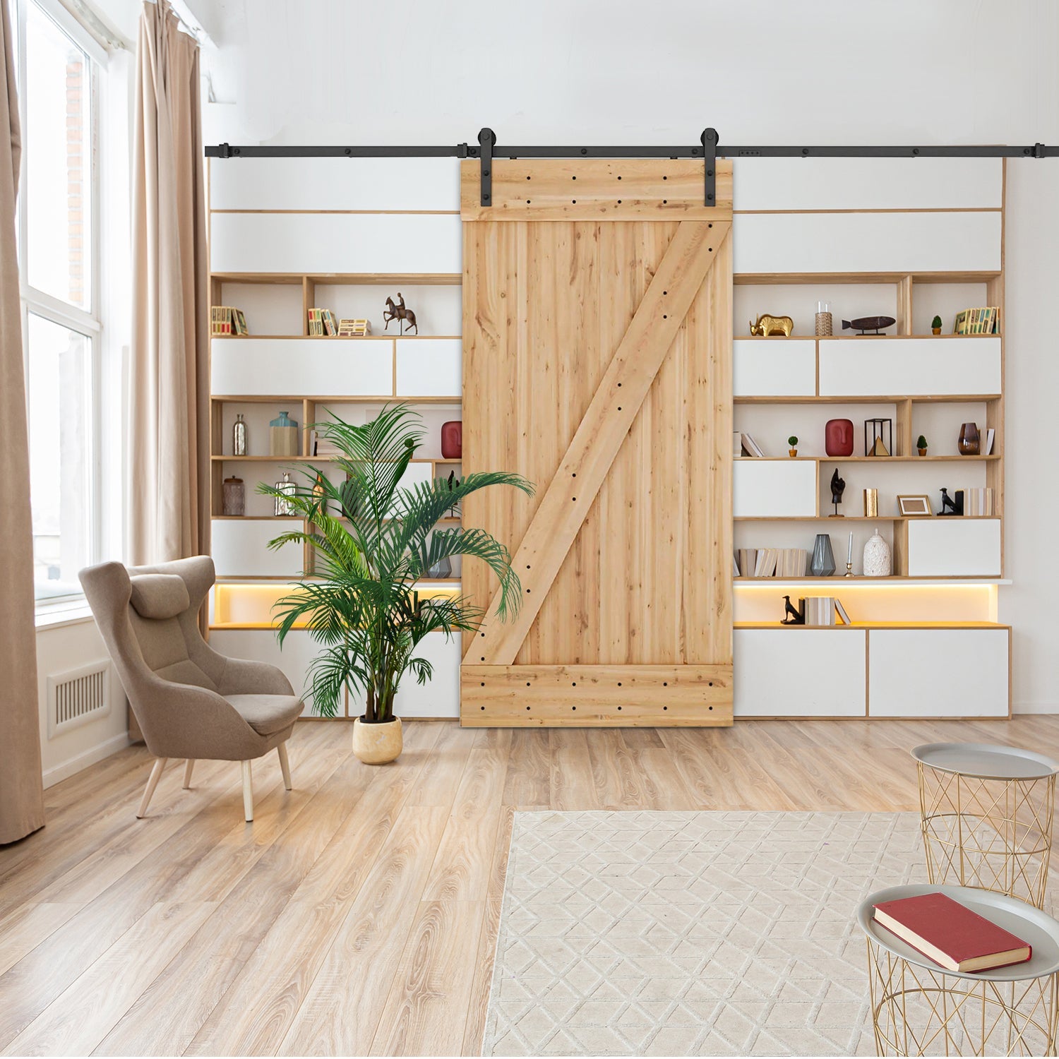 This sliding wood door hardware kit set is a great design for home, which is a popular new way to bring innovation into the home and close off bedroom and side room in a stunningly unique way. The door is hung on a piece of hardware with a wheel. That rolls along a track mounted to the wall.