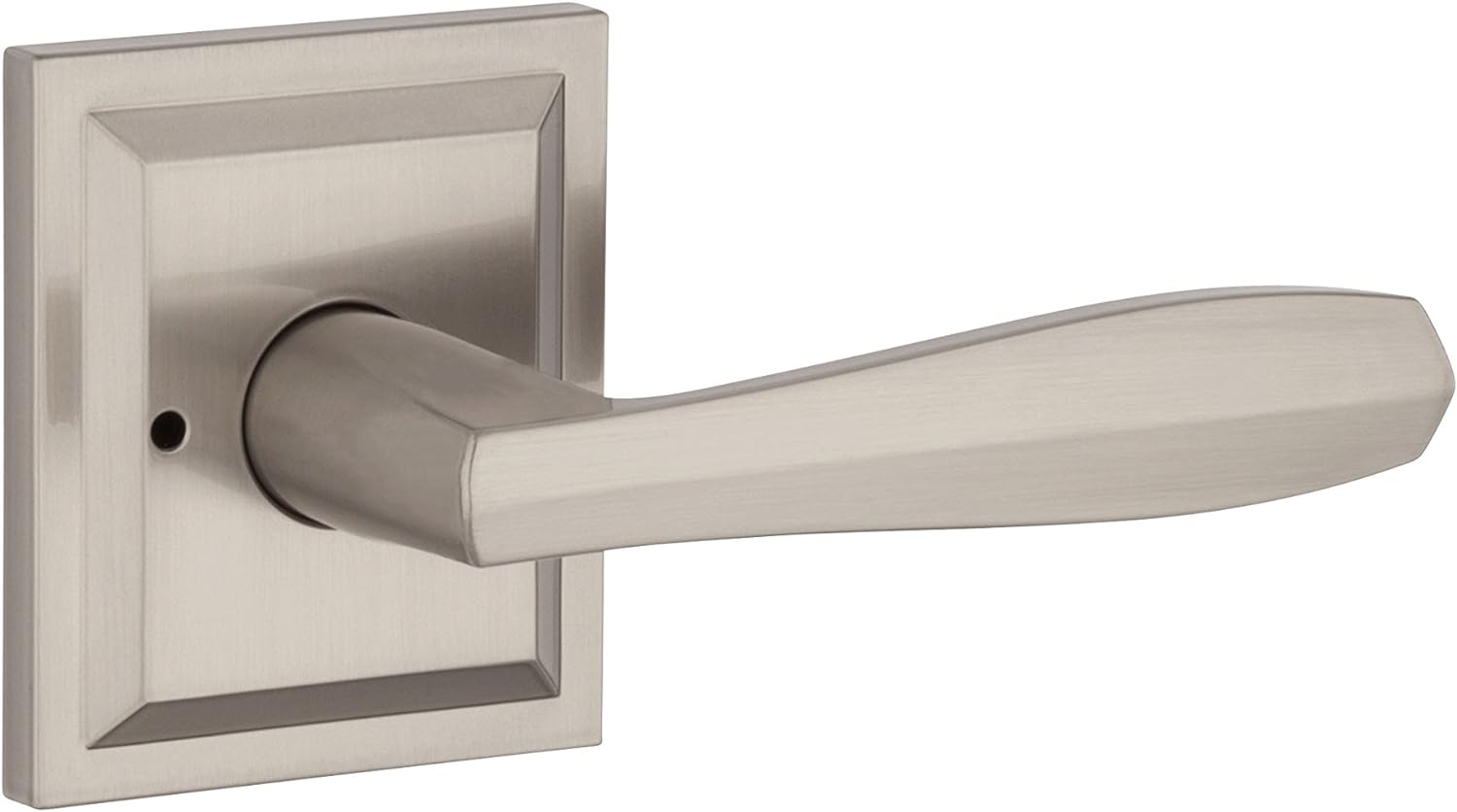 Baldwin Torrey, Interior Privacy Door Handle Reversible Lever for Bedroom/Bathroom, Keyless Door Lock With Microban Protection, in Satin Nickel