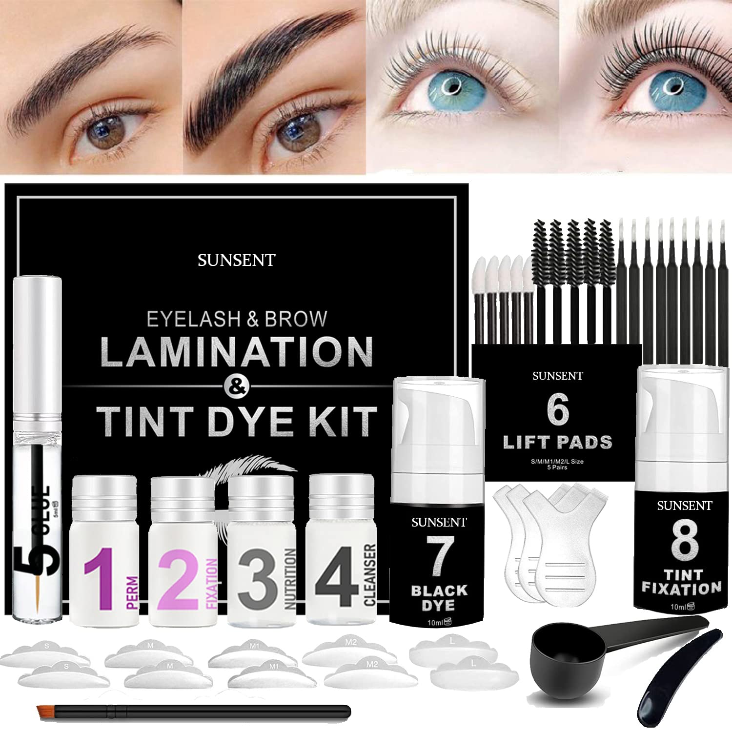 Brow Lamination Kit 4 in 1 | Black, SUNSENT Lash Lift and Perm Kit, Instant Eyelash and Eyebrow Quick Perm Lift For Eyelash Growth 12-weeks Long Lasting, KERATIN Safe Use for Home Salon