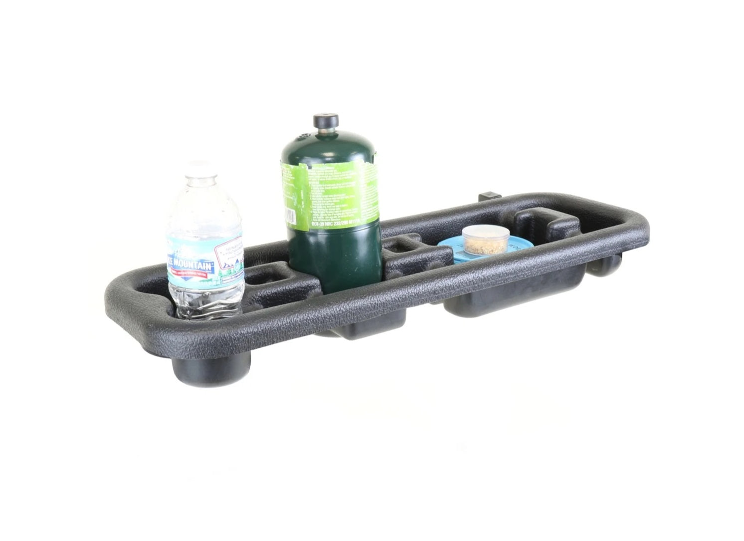 Need somewhere handy to keep your jigs and a beverage in your flip-over shelter? This convenient console offers several storage spaces, all within easy reach beside your seat. This center console rests directly on the edges of most Fish Trap tubs.