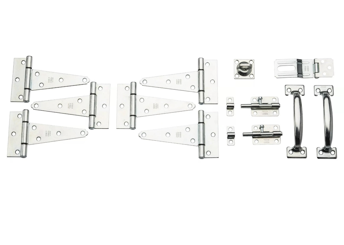 - Includes: (6) Hinges (2) Barrel Bolts (2) Pulls (1) Hasp Screw