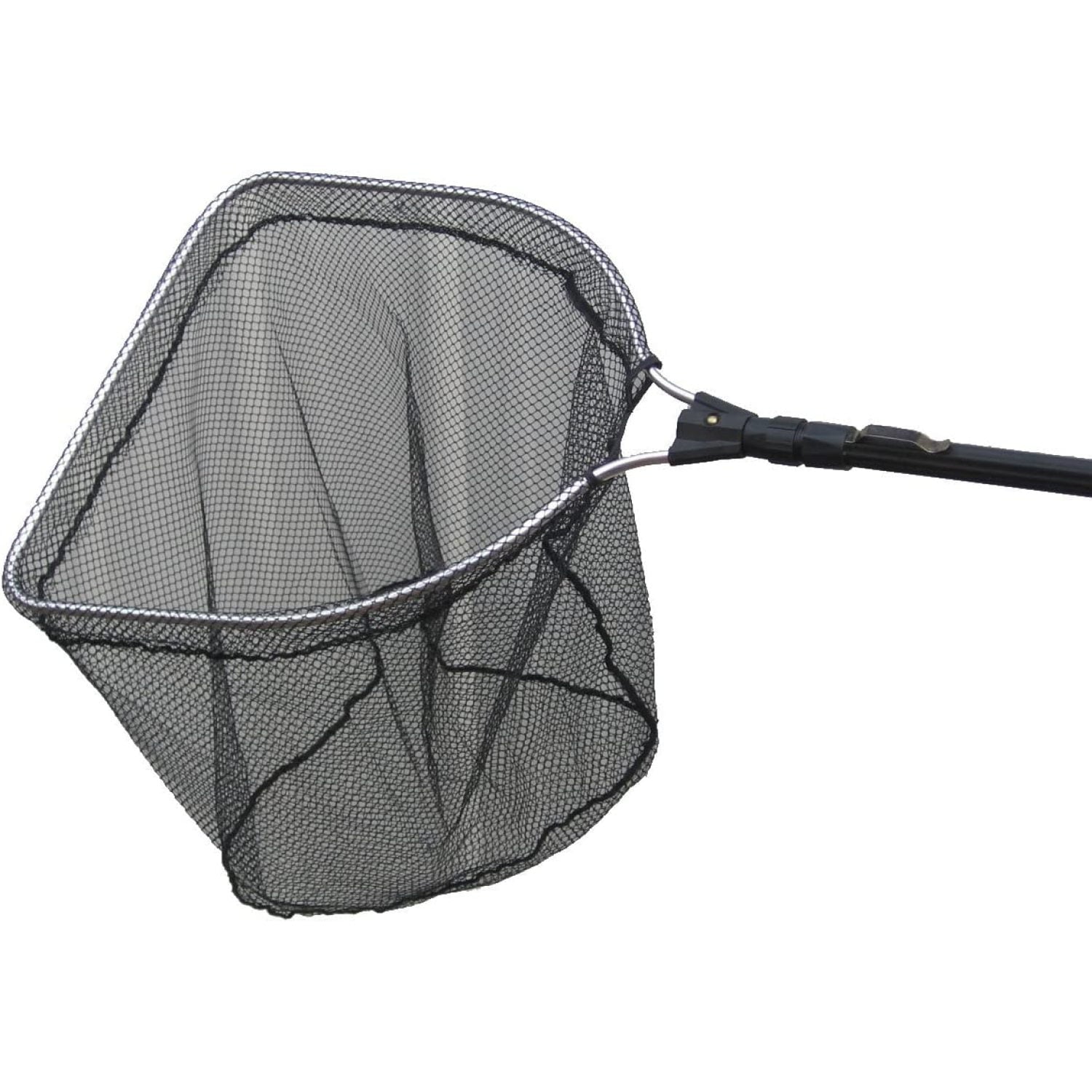 Net measures 17' x 18' x 16' deep mesh and is flat along the front making it easier to catch fish. Includes telescoping handle.