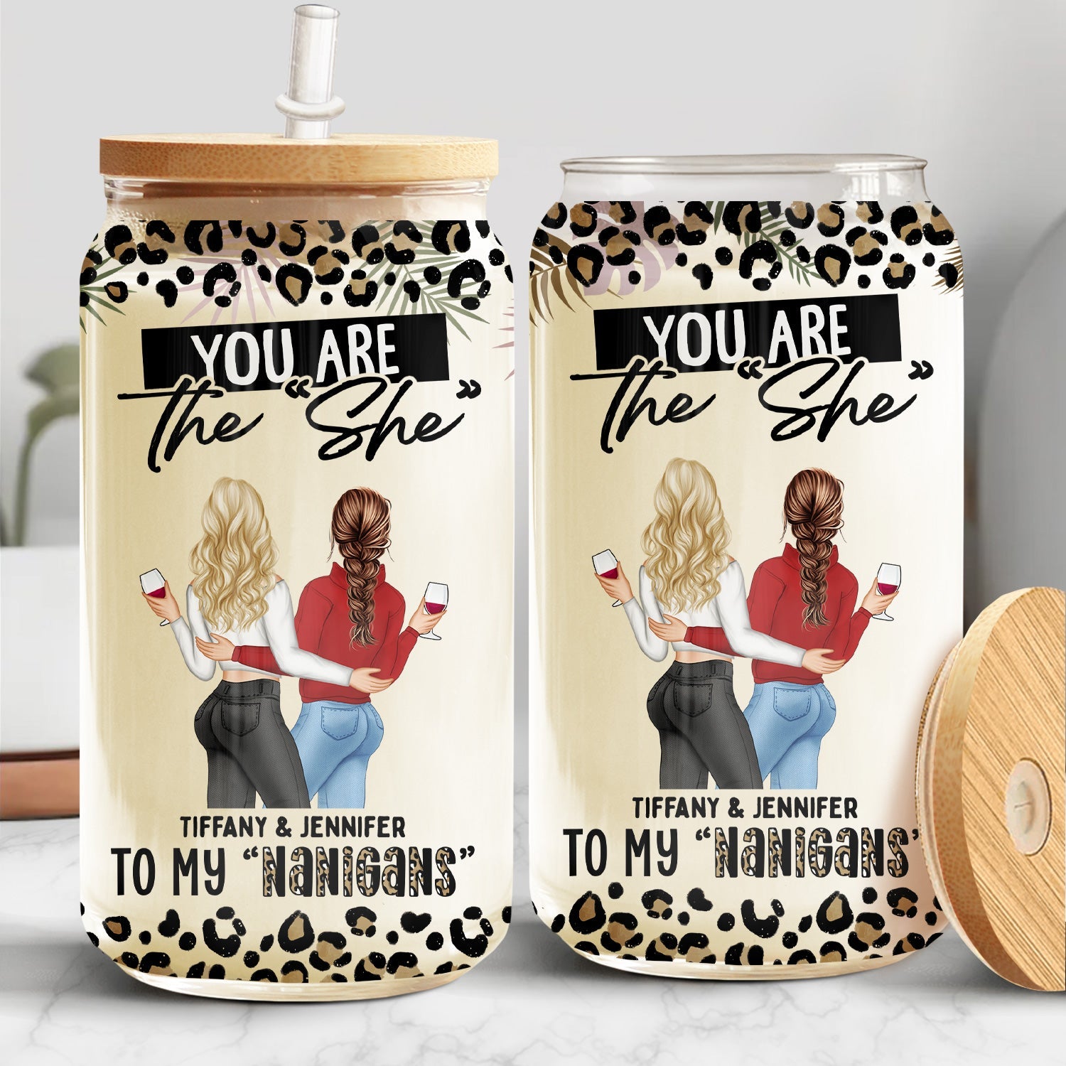You're The She To My Nanigans - Birthday, Loving Gift For Friends, Colleagues - Personalized Clear Glass Can